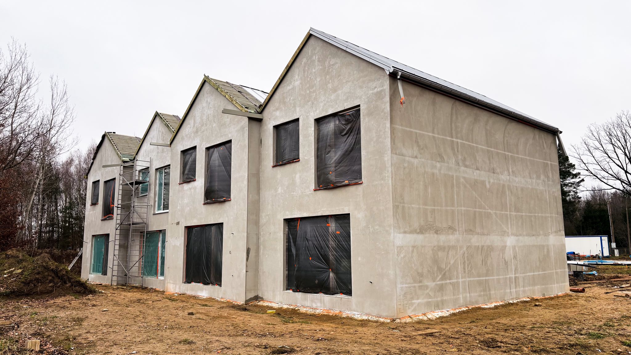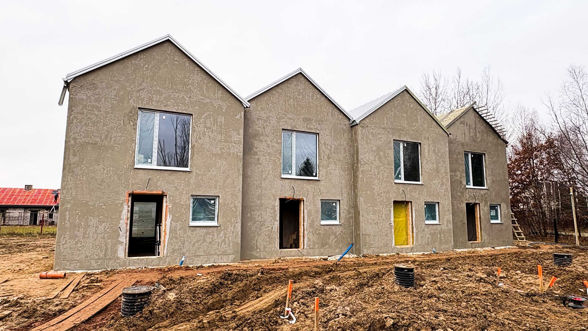 Aktualnie na terenie inwestycji trwają prace budowlane, a domy wznoszone są zgodnie z harmonogramem. Regularnie publikujemy zdjęcia z placu budowy, dzięki czemu mieszkańcy i przyszli klienci mogą na bieżąco śledzić postęp realizacji projektu. Nasza galeria pokazuje zarówno fundamenty, stan surowy, jak i kolejne etapy wykończenia – wszystko z dbałością o każdy detal i z szacunkiem dla otaczającej przyrody.
