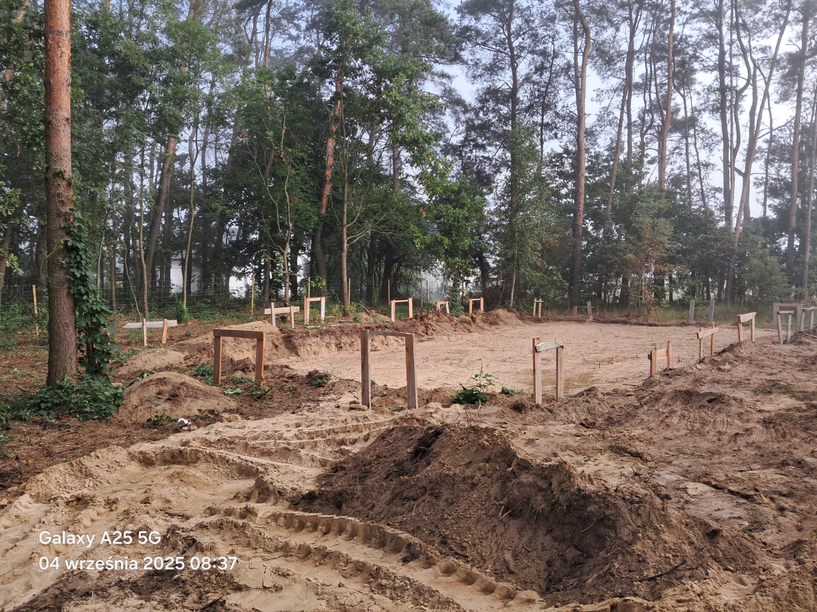 Aktualnie na terenie inwestycji trwają prace budowlane, a domy wznoszone są zgodnie z harmonogramem. Regularnie publikujemy zdjęcia z placu budowy, dzięki czemu mieszkańcy i przyszli klienci mogą na bieżąco śledzić postęp realizacji projektu. Nasza galeria pokazuje zarówno fundamenty, stan surowy, jak i kolejne etapy wykończenia – wszystko z dbałością o każdy detal i z szacunkiem dla otaczającej przyrody.